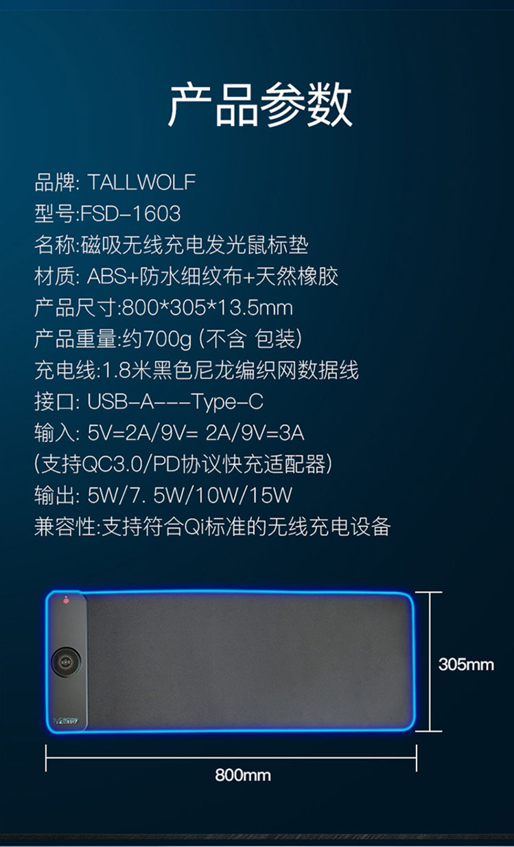 新款15W无线充电发光鼠标垫